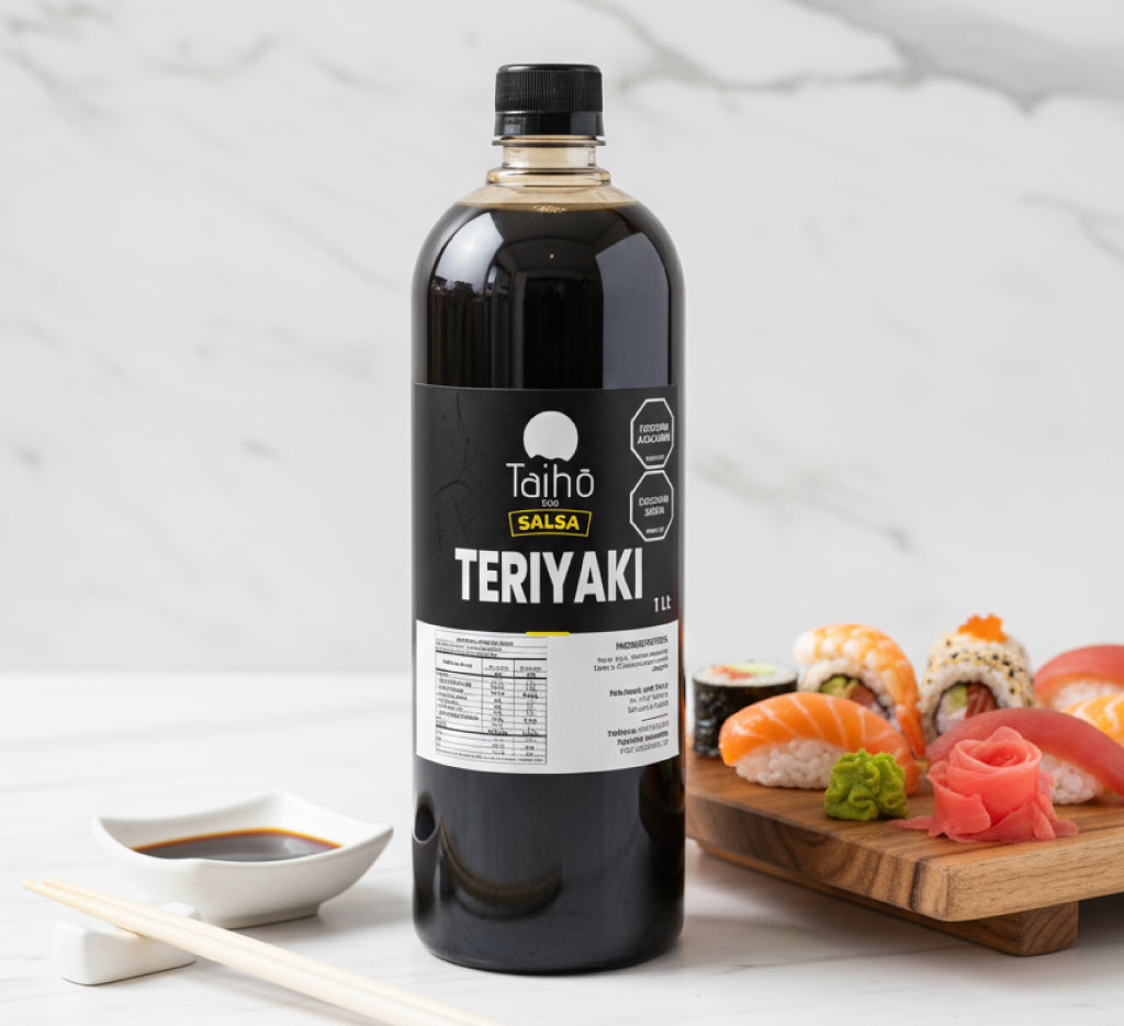 Nuestra salsa Teriyaki combina dulzura, salinidad y umami en un balance único, diseñada para realzar y dar carácter a cualquier preparación.